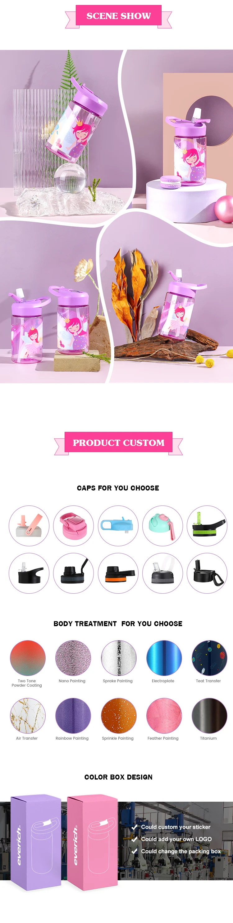 2023 everich Kids water bottle 400ml Tritan with straw lid and built in carrying loop