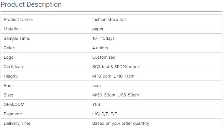 Adjustable Straw Hat Custom Logo Sun Summer Beach Straw Hat for Children and Adults
