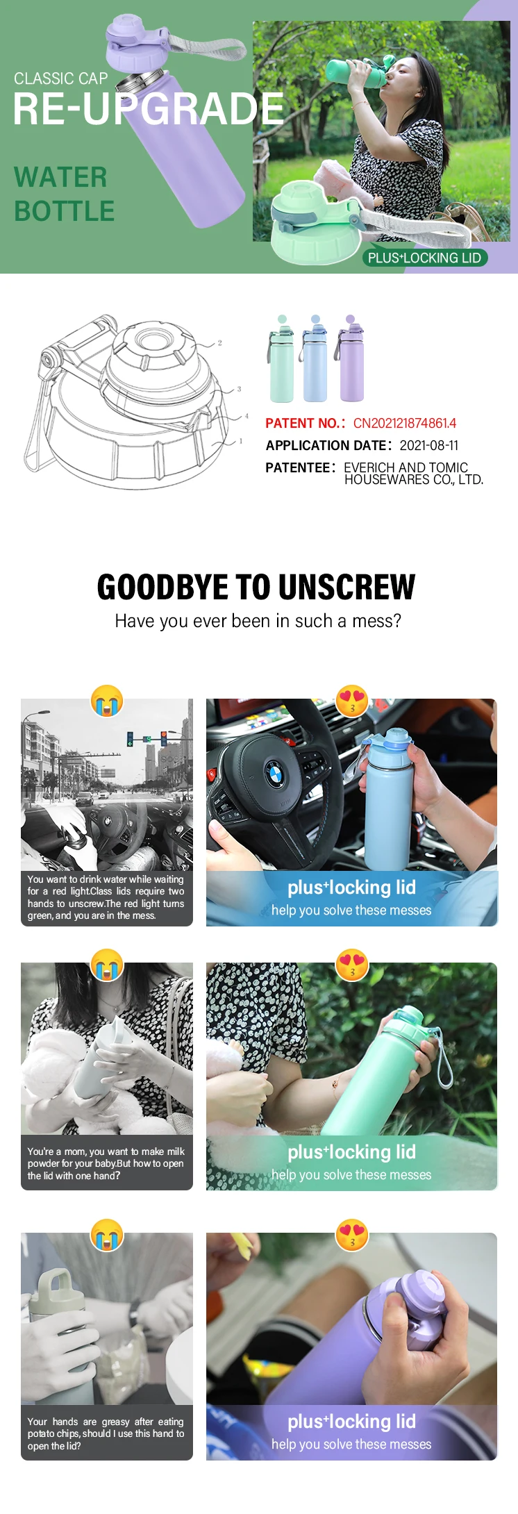 Name:Everich ODM Lids Double Wall Vacuum Flasks Thermos Stainless Steel Insulated Water BottleWith Straw and Flip Lid