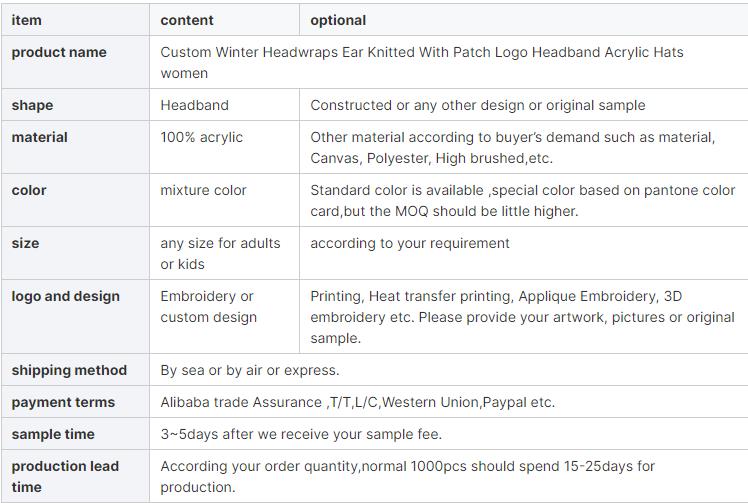 Custom Winter Headwraps Ear Knitted With Patch Logo Headband Acrylic Hats women