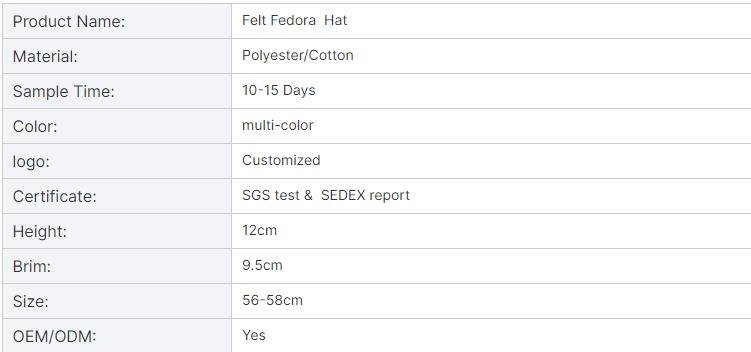 Faux Wool Big Wide Brim Felt Hat 9.5cm Fadora fedora hats for women men Ladies Spring