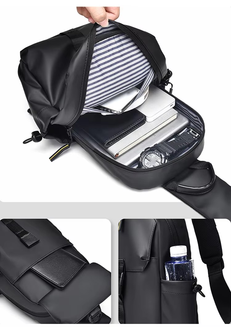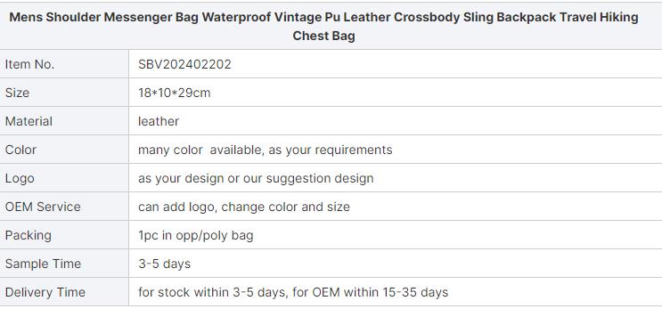 Mens Shoulder Messenger Bag Waterproof Vintage Pu Leather Crossbody Sling Backpack Travel Hiking Chest Bag
