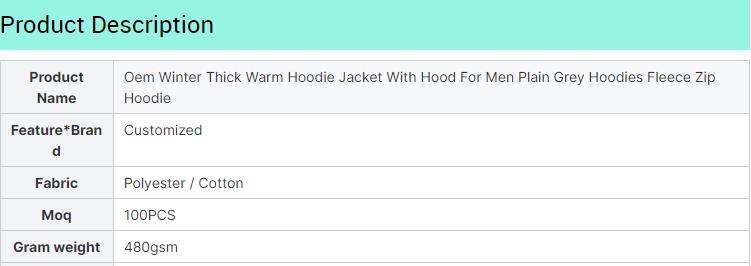 Oem Winter Thick Warm Hoodie Jacket With Hood For Men Plain Grey Hoodies Fleece Zip Hoodie